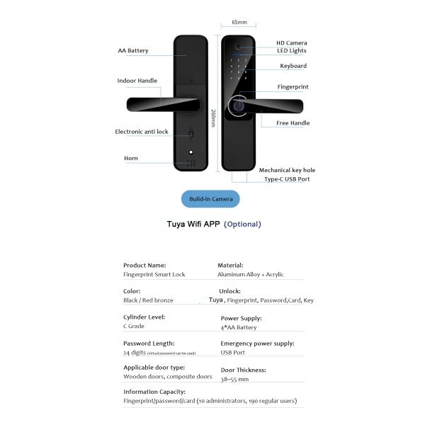 Unlock Method : Card+password+Key+Fingerprint+Tuya Wifi APP